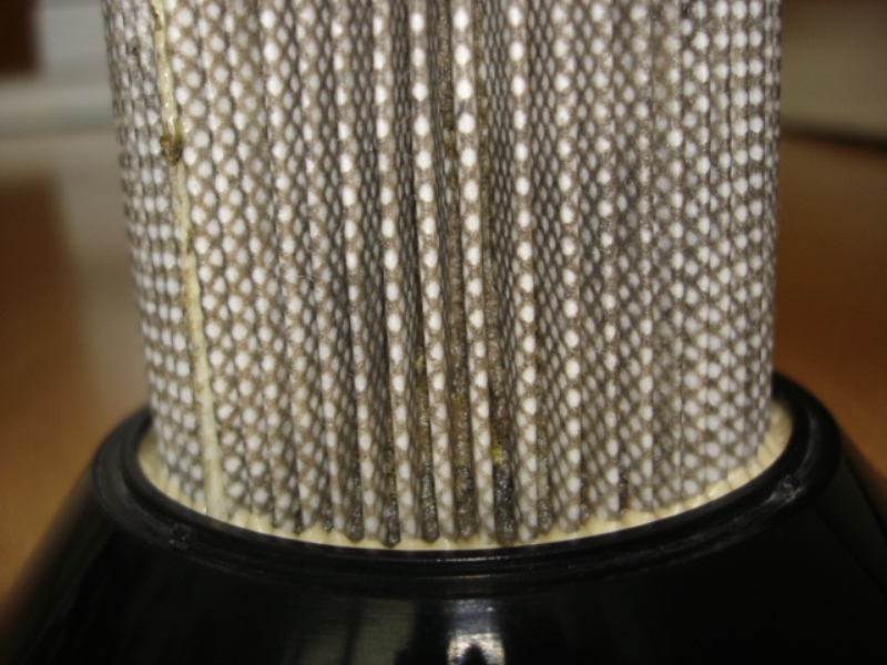 Je-li toto spojení narušeno (tmavší filtr vlevo, okraj), proudí část vzduchu kolem filtru vnitřkem pouzdra (uvědomte si tu sílu sání) a zejména u alergiků takový vysavač nemá význam. Vybíráte-li tedy vysavač s HEPA filtrem, zkontrolujte si kvalitu utěsnění tohoto filtru.